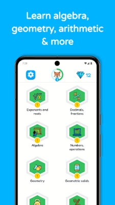 • Improve your math skills in fractions, geometry, algebra, decimals and roman numbers!