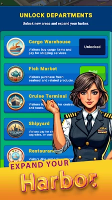 Upgrade Your Harbor: Invest your earnings in expanding your docks, improving storage capacity, and unlocking new features.