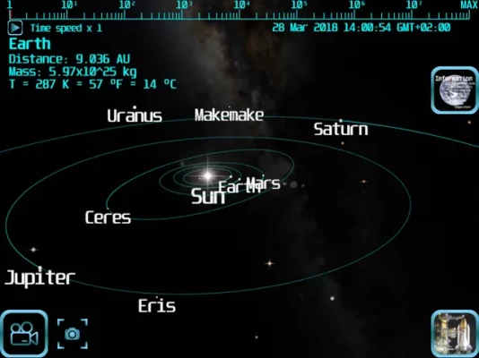 Besides simulating space flight, this app can also be used as a planetarium, with all known planets shown in real scale with their accurate keplerian orbits. It can also be used as a star chart and exoplanet explorer, showing all solar systems with confirmed exoplanets within 50 light years from the Sun.