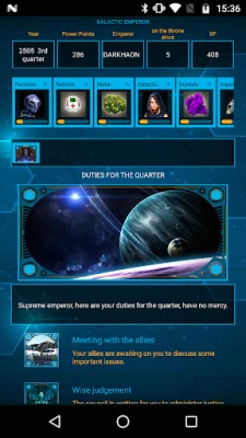Age of Dynasties: Galactic War focus on civilizations wars in the galaxy and is a free turn based strategy game with a combination of role-playing elements: political and president simulator decision games, civilizations wars and space RPG.