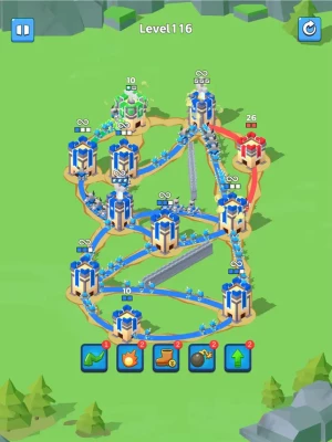 Swipe your finger to connect towers. What you need to do is to take over the towers of other colors.