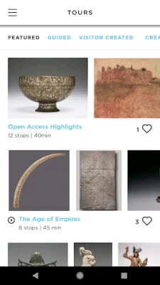 Select from "Featured," "Multimedia," "Themed," and Visitor-Created" tours in ArtLens App. The mapping feature locates specific artworks and navigates the entire tour.