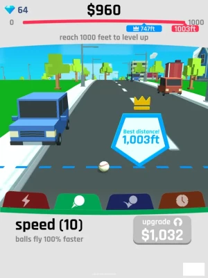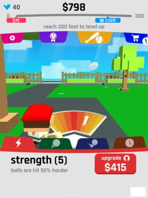 Hit your baseball as hard as possible and upgrade your stats! Improve your best distance and unlock even better baseball bats!
