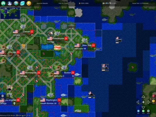 The simulation strategy logic and user interactive concept are inspired by the classic Civilization game from Sid Meier. The game have used graphics, music, map, and text materials that come from the public domain licensed by Creative Commons License or General Public License.