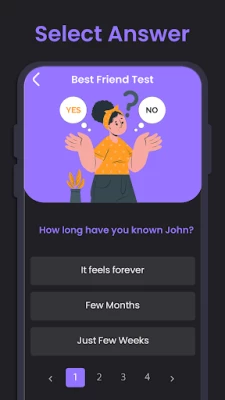 The process is simple. You just need to enter your and your friend's name in the BFF Friendship to start the friendship compatibility test. You then answer 10 simple questions about your friendship in this playful quiz. At the end of this fun little quiz, you can see the friendship score in the buddy meter.
