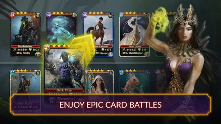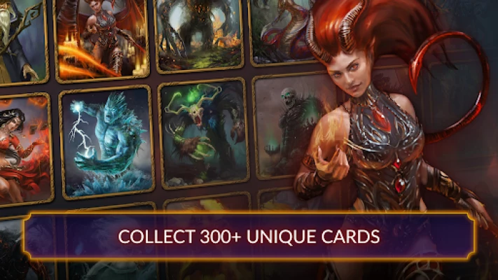 Step into a dark TCG war game. Select your clan of heroes and build a formidable deck for epic duels. Tailor characters to enhance combat tactics and summon powerful heroes. Follow your path into a mesmerizing realm of fantasy while engaging in thrilling PVP & PVE battles.