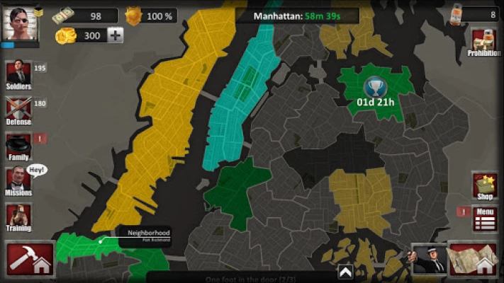 • Fight against other mafia families. Conquer their territory and advance your influence level with it.