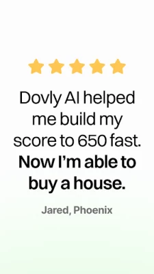 With more than 1,000,000 downloads, Dovly’s AI-powered tools can help you build credit and boost your score by an average of 82 points* and hit those life goals—like buying a car, getting approved for a credit card or getting that dream home—sooner than you’d expect.