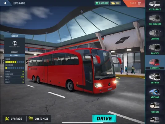 Select a bus model from a wide range of different bus models and brands or design your own bus at our customization garage, modify it, paint and unleash your inner artist. You can create a masterpiece with the provided countless customization options of vinyls, rims, platings and paint to create your dream bus for the driving arena.