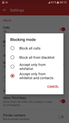 ⇛ Blocking all phone calls from unknown number and blacklist