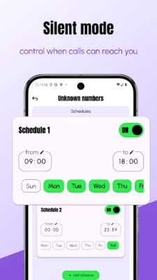 • Silence calls with custom schedules.