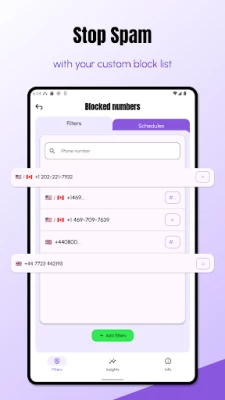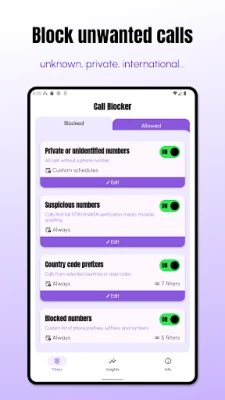 Only the incoming phone number is checked against your filters — all processing happens locally on your device, keeping your information safe and secure.
