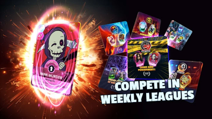 - Build battle decks to duel friends in epic action packed weekly PvP CUE Leagues and events