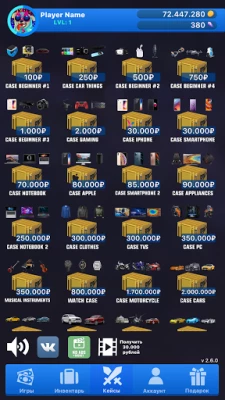 For more fun, there is a market testing system. You can sell and buy any item from the boxes in the case opening simulator.
