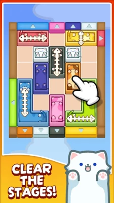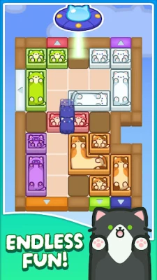 Slide the cat blocks across the puzzle board and drop each cat into the wall with the matching color.