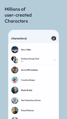 Become part of a thriving AI Community filled with millions of real creators, explorers, and storytellers. Character.AI is more than just an app—it's a movement where people from around the world connect through the power of storytelling, AI chat, and world-building with your favorite Characters.