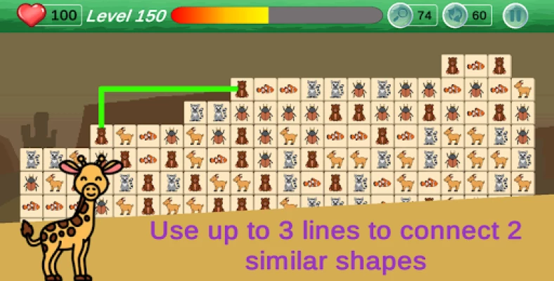 - Use up to 3 straight lines to connect 2 similar animal shapes.