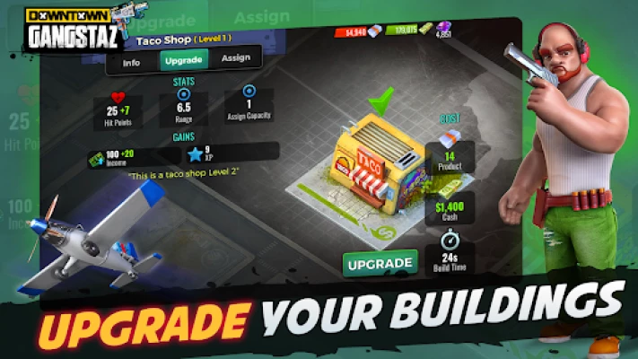 Step into a world of war with Downtown Gangstaz, the ultimate gangster experience that will throw you into a world of danger and excitement! Live the life of a notorious mobster as you build your criminal empire and clash with competition to rise to the top of the underworld. Be the gangster Tycoon. Build your hood and unleash war with an army of Mercs to smash other cities. Control your bosses in a war for the ultimate victory. Defend your hood by assigning not just towers, but Mob units for a more immersive battle feel.