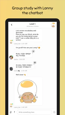 Learn & practice your speaking, reading, listening, and Korean writing skills with Lanny – the chatbot tutor. Have a chatbot tutor in your pocket!