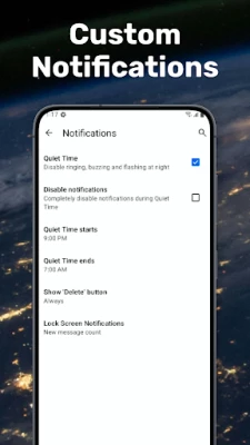 - Custom push notifications for each individual email account, such as the 'Work' email address set to 'Do not Disturb' mode from 21:00 to 7:00 p.m.