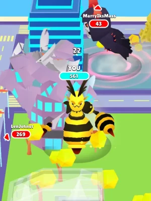The gameplay of Evo Crazy Beasts 3D is straightforward - choose your monster and cause maximum damage in the time allotted for the round. For each destroyed object, you get experience. When your monster levels up, it evolves, getting bigger, and its appearance changes. Turn the little animal into a huge dragon bigger than skyscrapers! But keep in mind that it won’t be easy at all, you are surrounded by opponents who are eager to throw you off the top of the leaderboard and take all your earned experience. Fight and crush them before they have time to understand anything. Smash the city in the allotted time and rise to the top of evolution!