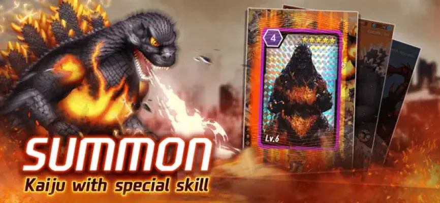 - Collect monsters and upgrade Godzilla Cards to summon Godzilla during the battle!