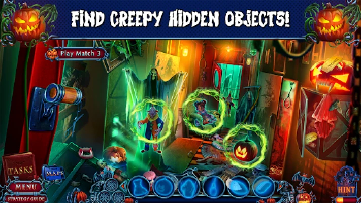 In this version of Halloween Chronicles Evil Behind a Mask Collector’s Edition, you may also collect morphing figurines, coins to buy items for your study, lost pages of a mysterious Book of Monsters, as well as download wallpapers, replay your favorite seek and find games and enjoy concept arts!