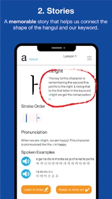 Learn the first 6 Hangul letters for free! If you're impressed, then unlock the rest of the course with a small In App Purchase.