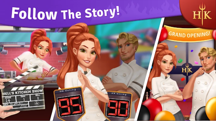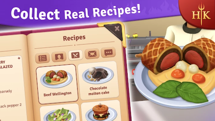 Along with the puzzle game and the restaurant design, you will learn cooking recipes from Hell's Kitchen's cookbook! Prepare the specialty of each day, as the cooking adventure and the puzzle game progresses!