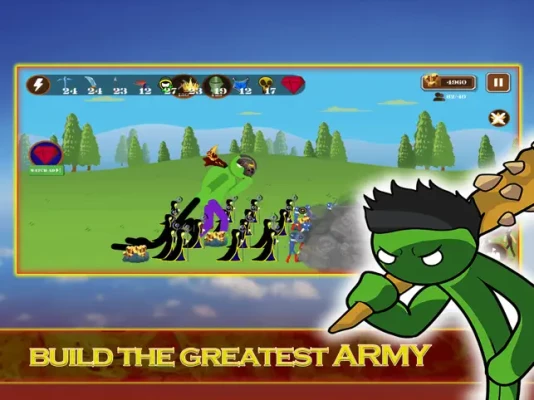 +Variety of Stickman characters : Miner, hammer stick, knight, Archer, Wizard, Monster