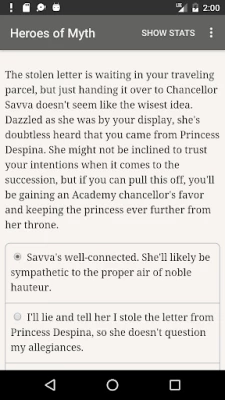 "Heroes of Myth" is a 560,000-word interactive novel by Abigail C. Trevor, where your choices control the story. It's entirely text-based, without graphics or sound effects, and fueled by the vast, unstoppable power of your imagination.