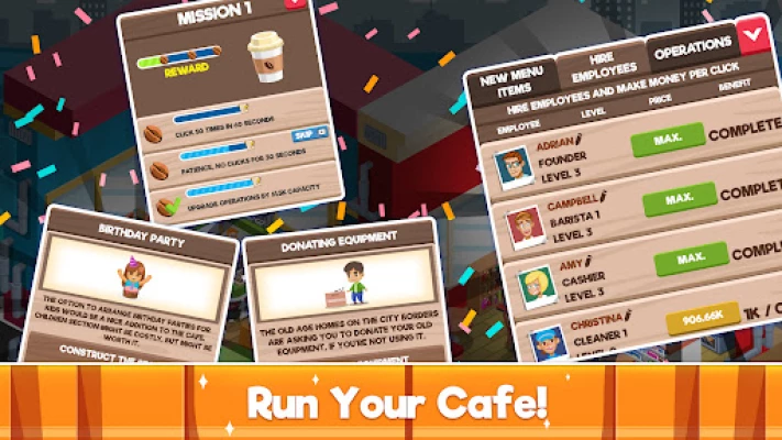 - Unlock awesome furniture to make the cafe business even more attractive!