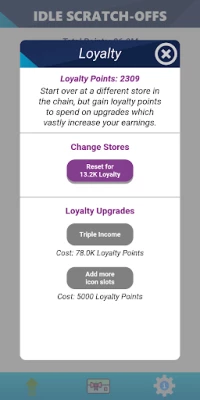 Scratch to win! Earn points by scratching off your rewards. Purchase upgrades and move to new stores to increase your income, unlock automation, and eventually more levels of prestige.