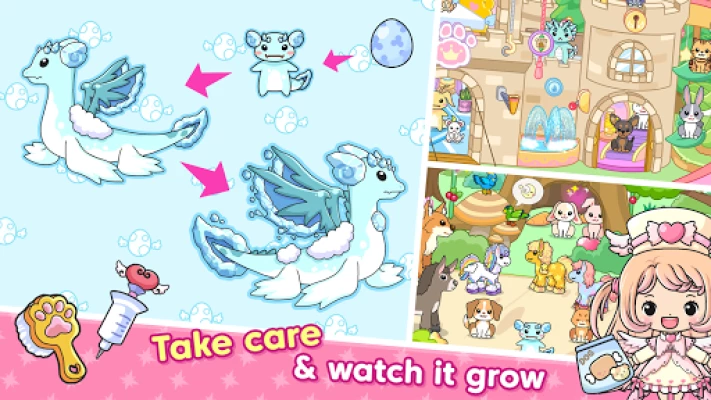 - More than 100 animal characters for you to raise and take care of, such as little unicorn, little fairy, mischievous cat, and cute dog.
