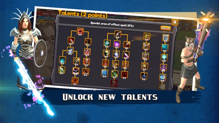 Unlock one of several powerful heroes and upgrade their stats in RPG-style. As you play you win various chests (including legendary ones) to equip your hero with powerful gear.