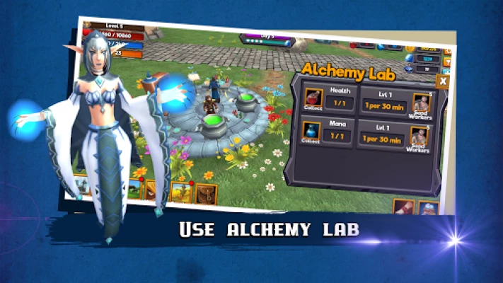 The game includes a mini-farming simulator as well, as you grow, farm and sell food. You also have a magic lab that produces mana and health elixir.