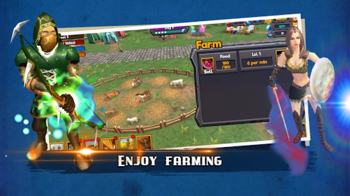 Your kingdom is protected by a wall that must be upgraded to keep up with enemies, as well as your other buildings. You also receive talent points that improve your troops.