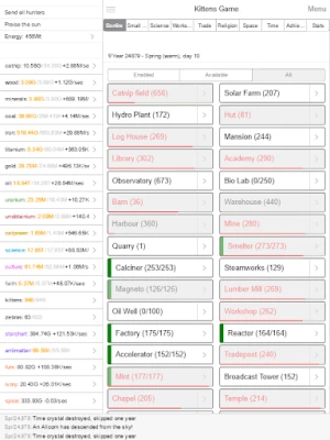 Kittens Game is a village simulation text game. You manage a village of kittens as they acquire resources and unlock new technologies.