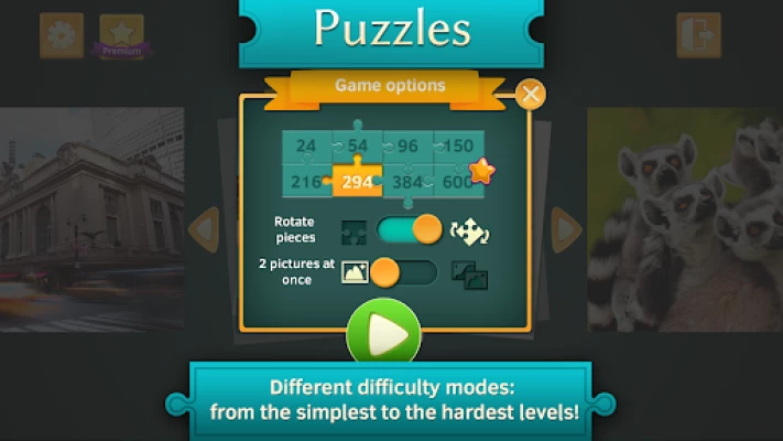 ✓ Rotation mode. Turn on pieces rotation to make the puzzle game more challenging;