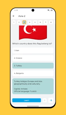 Tests – Help reinforce knowledge by matching the flag with the country name through multiple-choice questions.