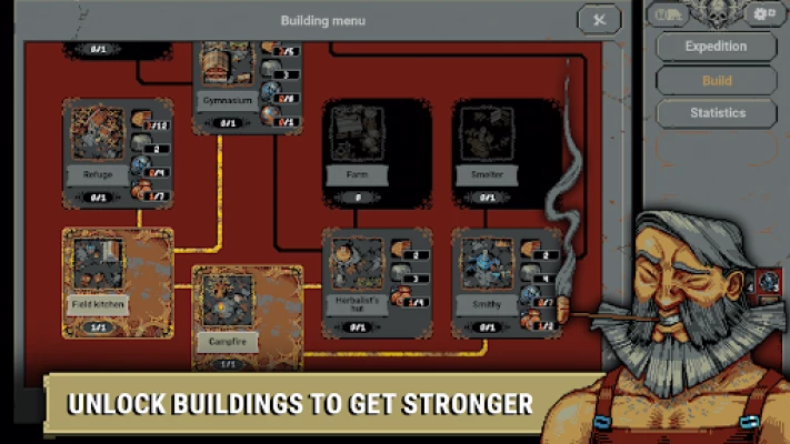 Recover and equip powerful loot for each class of hero for their battles and expand the survivors' camp to reinforce each adventure through the loop.