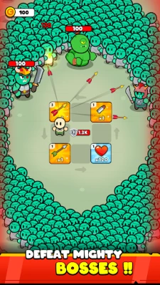 Build your team of heroes, each with their own style and skills. Choose a Stone warrior for toughness, a Goblin for unpredictable attacks, or an Electric Archer for ranged power. Mix and match heroes with different weapons to create new tactics every run. With upgrades and combinations to explore, no two battles ever feel the same.