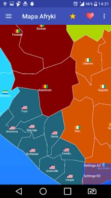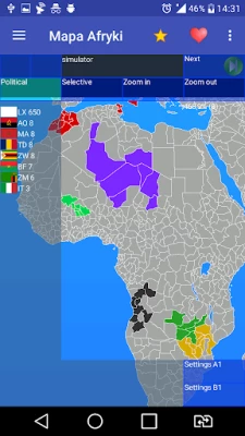 I present you with an application containing a map with more than 700 provinces from 75 countries from Africa and Asia with flags.