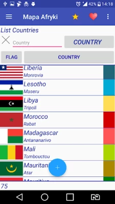 The application contains data and flags of African countries and parts of Asia.