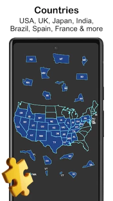 Jigsaw of states of USA, UK, Japan, China, India, Brazil, France, Germany, Italy, Spain, Venezuela, Mexico, Turkey, England, Argentina and more.