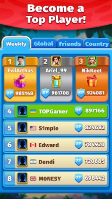 You have the option to spread your joy by inviting your friends to engage in PvP matches at this moment! Alternatively, players will find themselves paired with same skill levels, participating in the captivating multiplayer match 3 game.