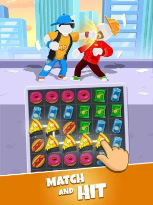 • Junk food’s bad for your skin! Well then, just get another one! In Match Hit there are dozens of awesome outfits to collect as you progress through the game, so get munching and punching to win more levels and keep your heroes in tasty new threads.