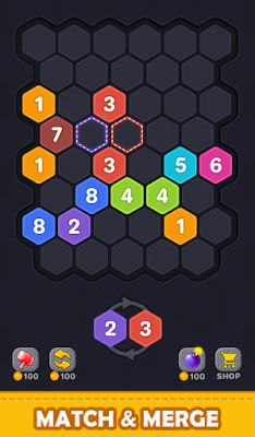 Merge Hexa Puzzle is an endless numpuz game.