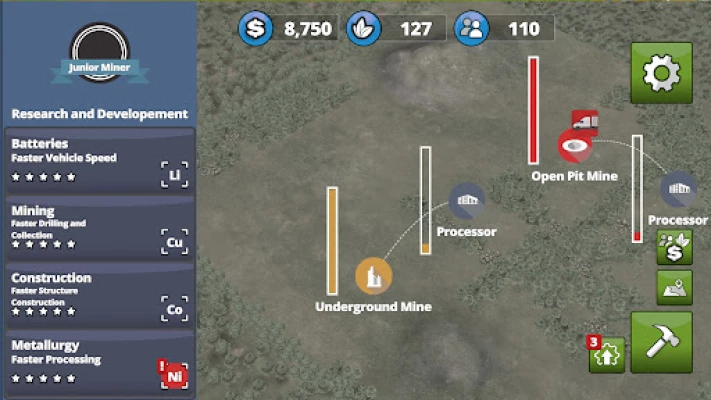 Hire technical advisors who will guide you through building your mine by extracting essential minerals from the ground.