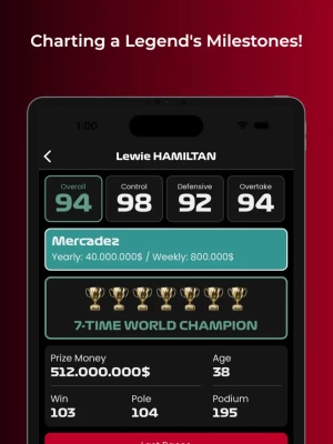 Analyze individual profiles, celebrating their accolades, poles, and victories. Stay on top of the standings, knowing every point counts.